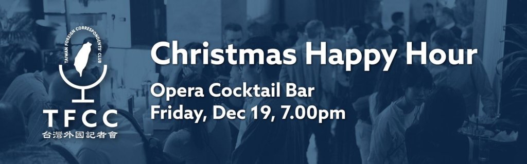 The Taiwan Foreign Correspondents’ Club will organize a festive Christmas Happy Hour on Friday, December 19th, to celebrate the end of a successful year for the Club and raise a glass to our community.