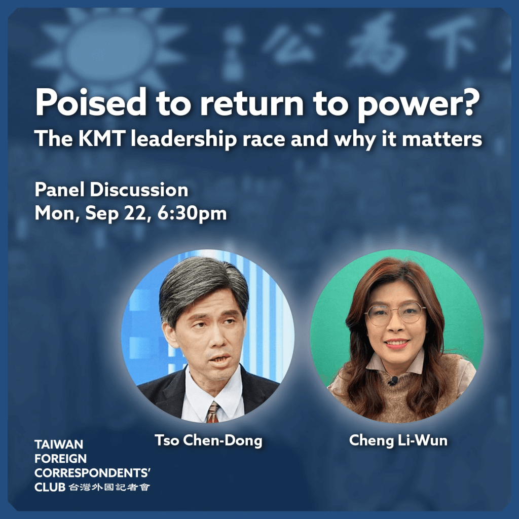 On September 22, the Taiwan Foreign Correspondents’ Club will be hosting a panel discussion entitled “Poised to come back to power? The KMT leadership race and why it matters to the world”.