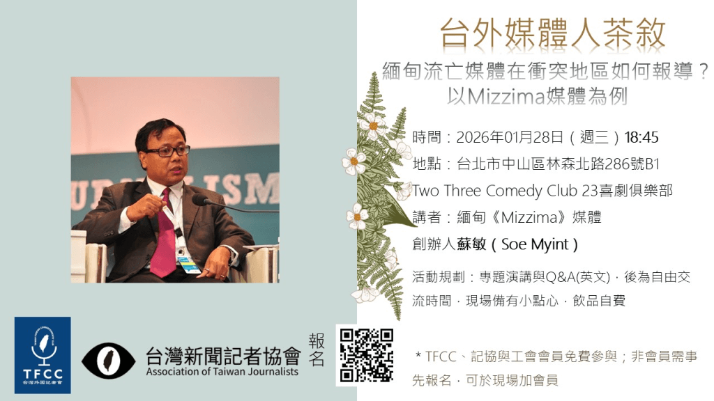 ATJ has invited Soe Myint, founder of the Myanmar media outlet Mizzima, to speak on the topic: